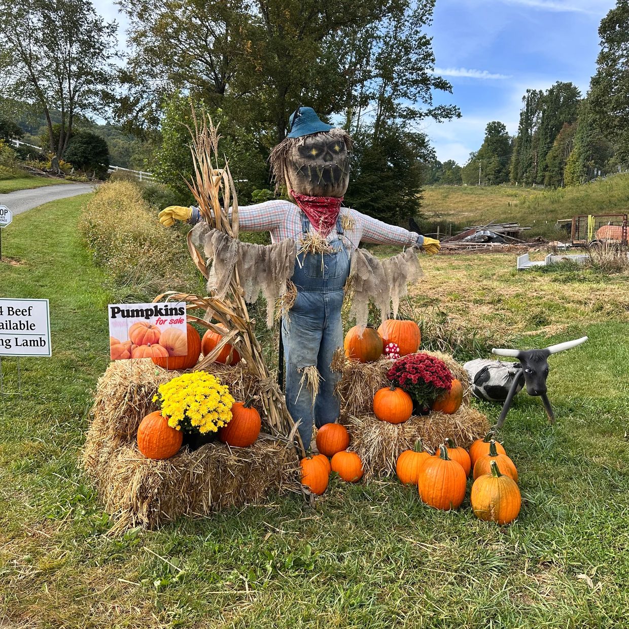 We have some beautiful pumpkins in all different sizes. They are deep orange and have great stems!